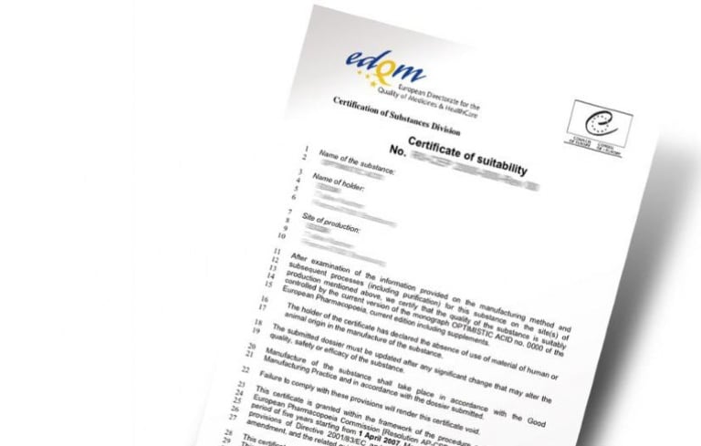 RGInsight provides complete support for obtaining a Certificate of Suitability (CEP) through the EDQM, ensuring that your API complies with the relevant European Pharmacopoeia (Ph. Eur.) monograph.